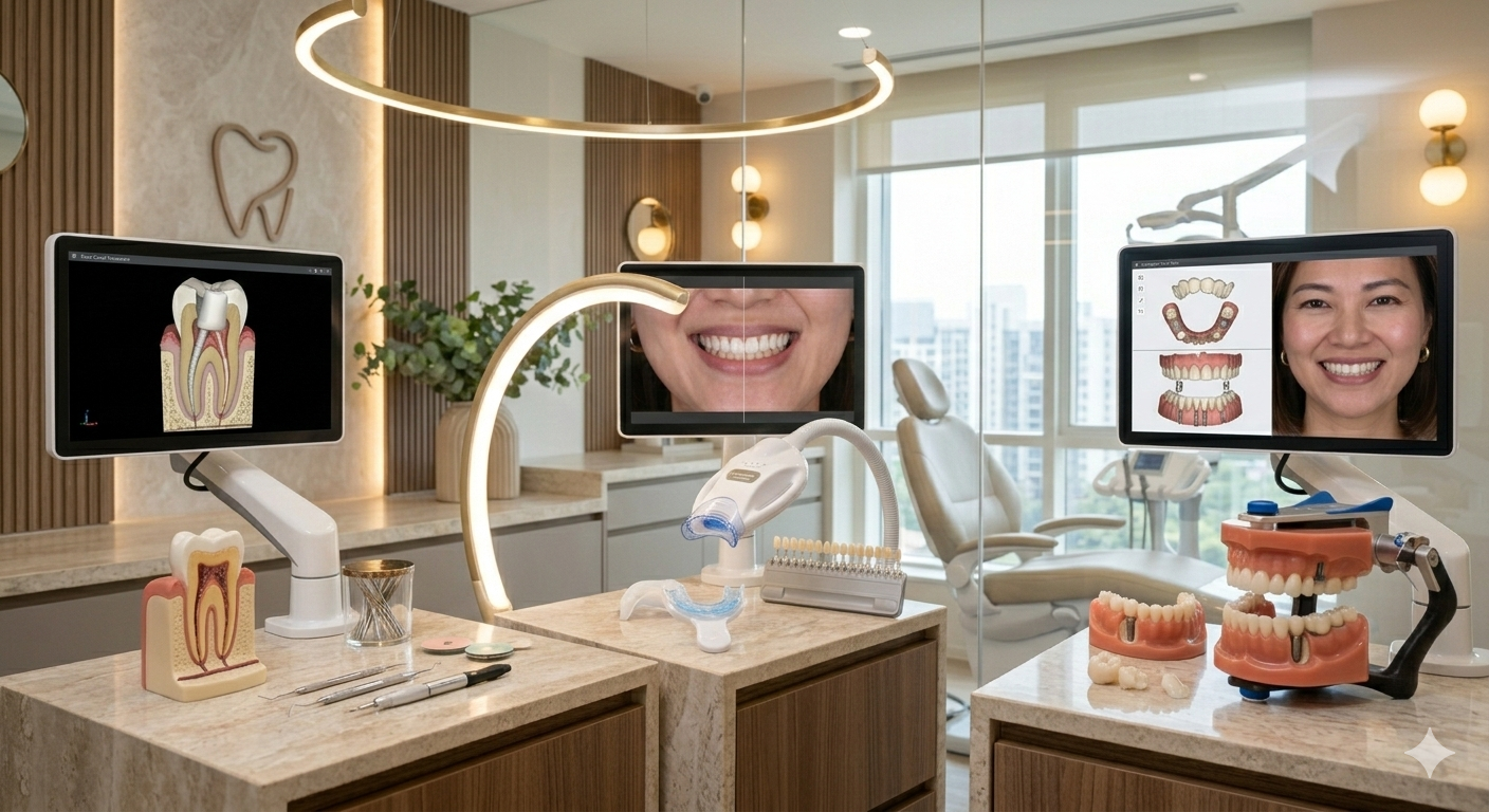 Patients benefit from expert diagnosis, advanced dental technology, strict sterilization protocols, and transparent treatment planning. We provide comprehensive dental services under one roof, including cosmetic dentistry, root canal treatment, veneers, inlays & onlays, kids dentistry, and full mouth rehabilitation.
